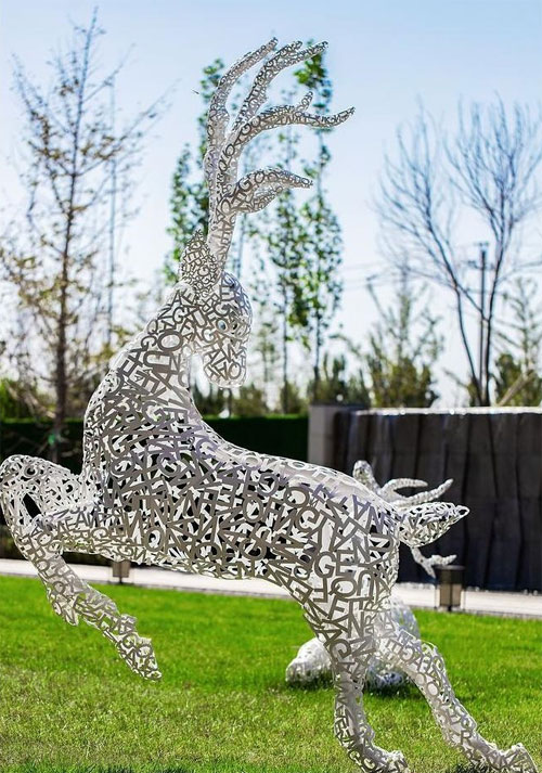 不锈钢切面鹿雕塑_草坪景观雕塑_合肥皖韵